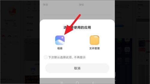 第五步:点击上述按钮后,再点击打开相册选择头像(如图所示)。