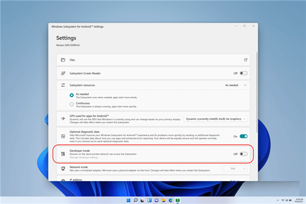 点击“开始”菜单,选择所有应用,找到Windows Subsystem for Android?? Settings,启用开发者模式,并找到子系统的IP地址。