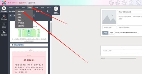 第二步:在图文编辑面板点击布局,选择基础布局(如图所示)。