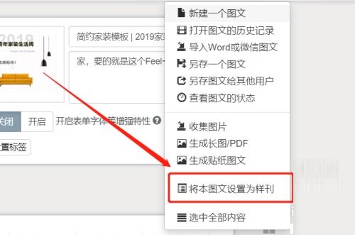 第四步:选中“将本图文设置为样刊”(如图所示)。