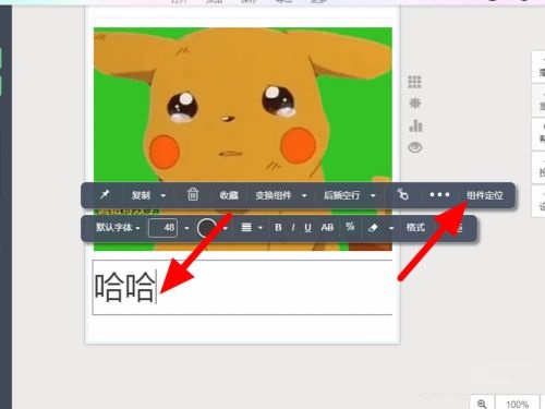 第四步:在空行中输入文字,点击组件定位(如图所示)。