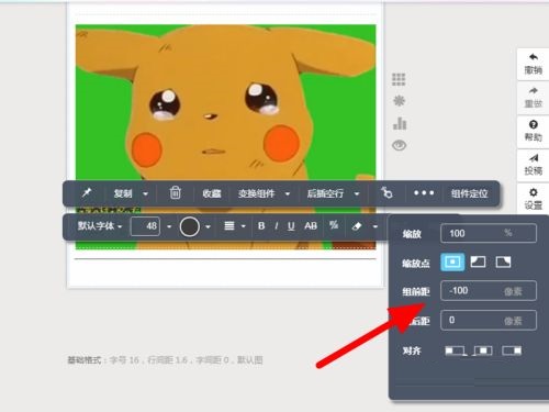 第五步:出现选项,设置组前距为-100(以实际情况为准)(如图所示)。