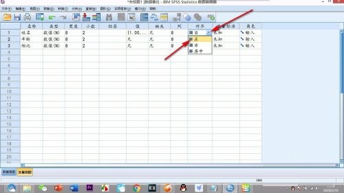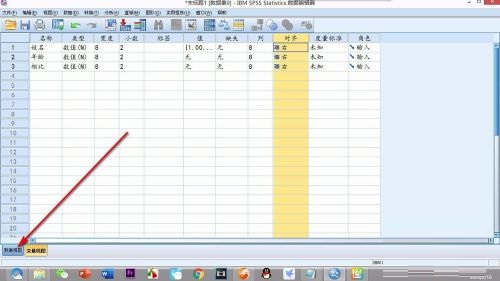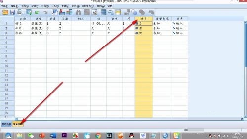 第一步:首先将SPSS的视图切换为——变量视图,在上方的栏中找到——对齐(如图所示)。