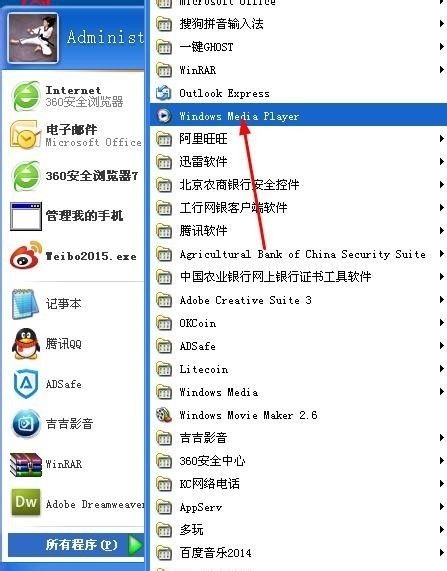 第二步:点击所有程序,找到Windows Media Player打开(如图所示)。