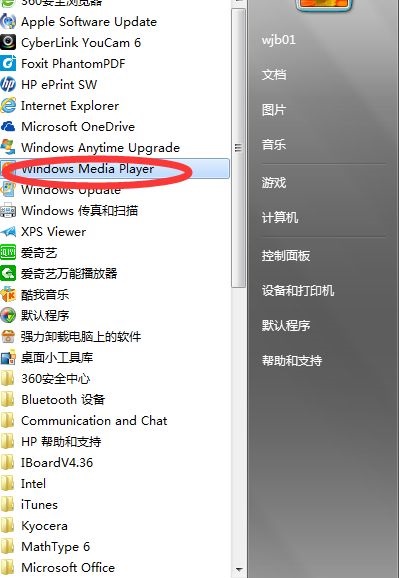 第二步:打开开始菜单-所有程序,选择windows media player,打开程序(如图所示)。