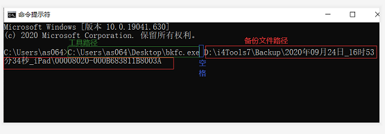 在“命令提示符”界面中,在之前的 bkfc 工具路径后面输入空格,然后将复制好的全备份文件路径进行粘贴,按回车键,等待运行完毕。