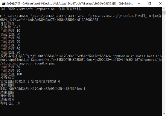 (3)修复完毕之后,bkfc 修复工具所在的文件夹中会出现新的 “FIX_Manifest.db”文件,请将其重命名为 Manifest.db 文件之后替换备份文件夹中的原文件,然后尝试重新全恢复操作。