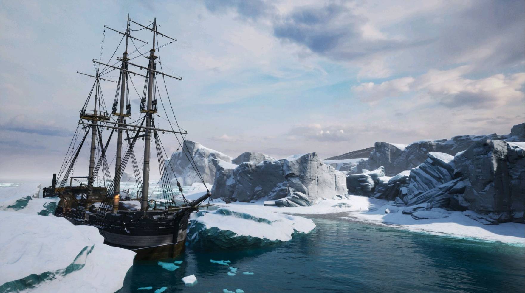操纵一艘19世纪的军舰围绕(或进入)冰山。为急需的锅炉寻找煤炭,以保持船舶运转……或炸毁。