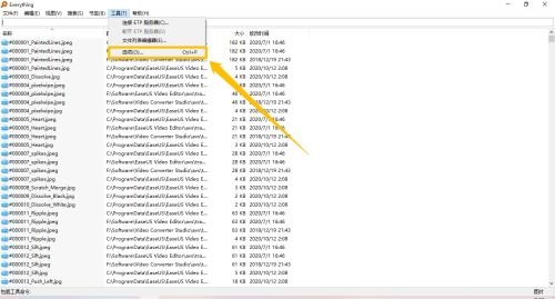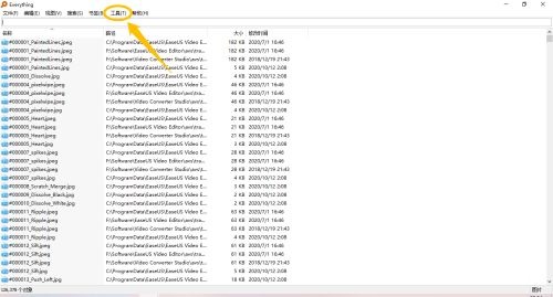 第一步:在“Everything”主界面中,点击上方的“工具(T)”菜单项(如图所示)。