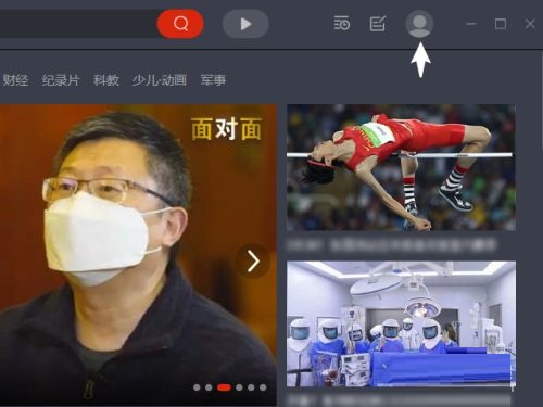 第一步:打开央视影音,单击页面右上角的头像(如图所示)。