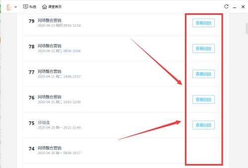 第三步:选择相应的复习回放,点击进入观看,如图所示