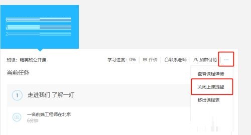 第三步:在课程设置里选择‘关闭上课提醒’(如图所示)。