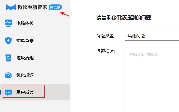 这次微软发布测试版的电脑管家,非常虚心的在自己的主页,增加了一个用户反馈的界面,如果大家在使用的过程中遇到任何问题都可以直接提交。