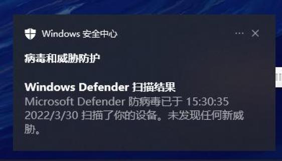 在体验完病毒查杀之后,发现 Windows 系统会给你发一个安全通知, Windows Defender 安全中心已经完成杀毒工作了,非常有牌面。