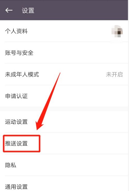 第四步:在“设置”窗口中,找到“推送设置”选项并点击(如图所示)。