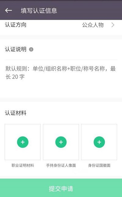 第四步:最后,填写认证信息提交申请(如图所示)。