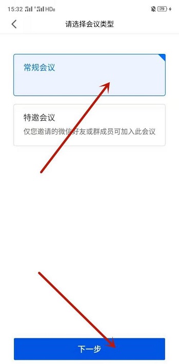 第四步:默认腾讯会议的选择即可,若为特殊会议,可以指定人选(如图所示)。