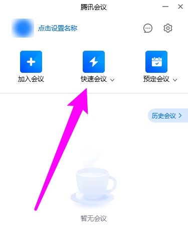 第一步:打开腾讯会议,进入主页面中,选择快速会议选项(如图所示)。