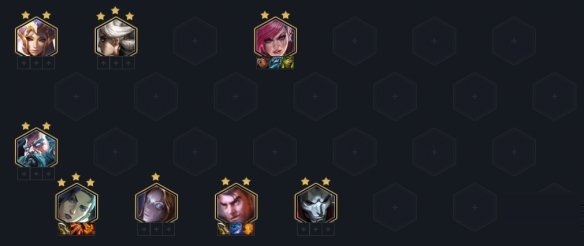 这套阵容的策略的是连败五级赌女警和卡蜜尔,二阶段不升级开3约德尔摆烂,打精致连败攒经济,2-3自然四人口,上一张女警,尽量稳血保证五连败到石头人。如果来牌质量高,也可以连胜运营速八找杰斯C。