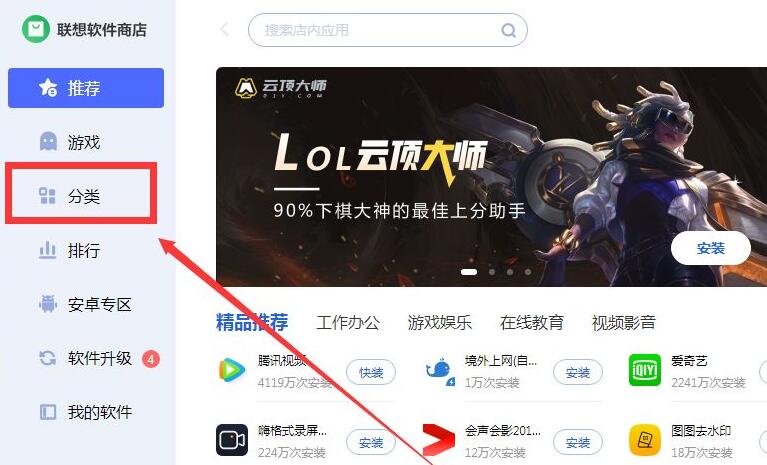 接着,打开软件商店后点击左上方“分类”选项。