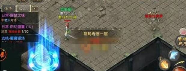 2、进入祖玛寺庙。祖庙寺庙路口位于盟重城外上方,只要进入盟重城外往上走即可看到。