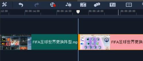 按下剪刀后,我们就看见下方覆叠轨的视频已经被分隔开来,已经分割成为两端。
