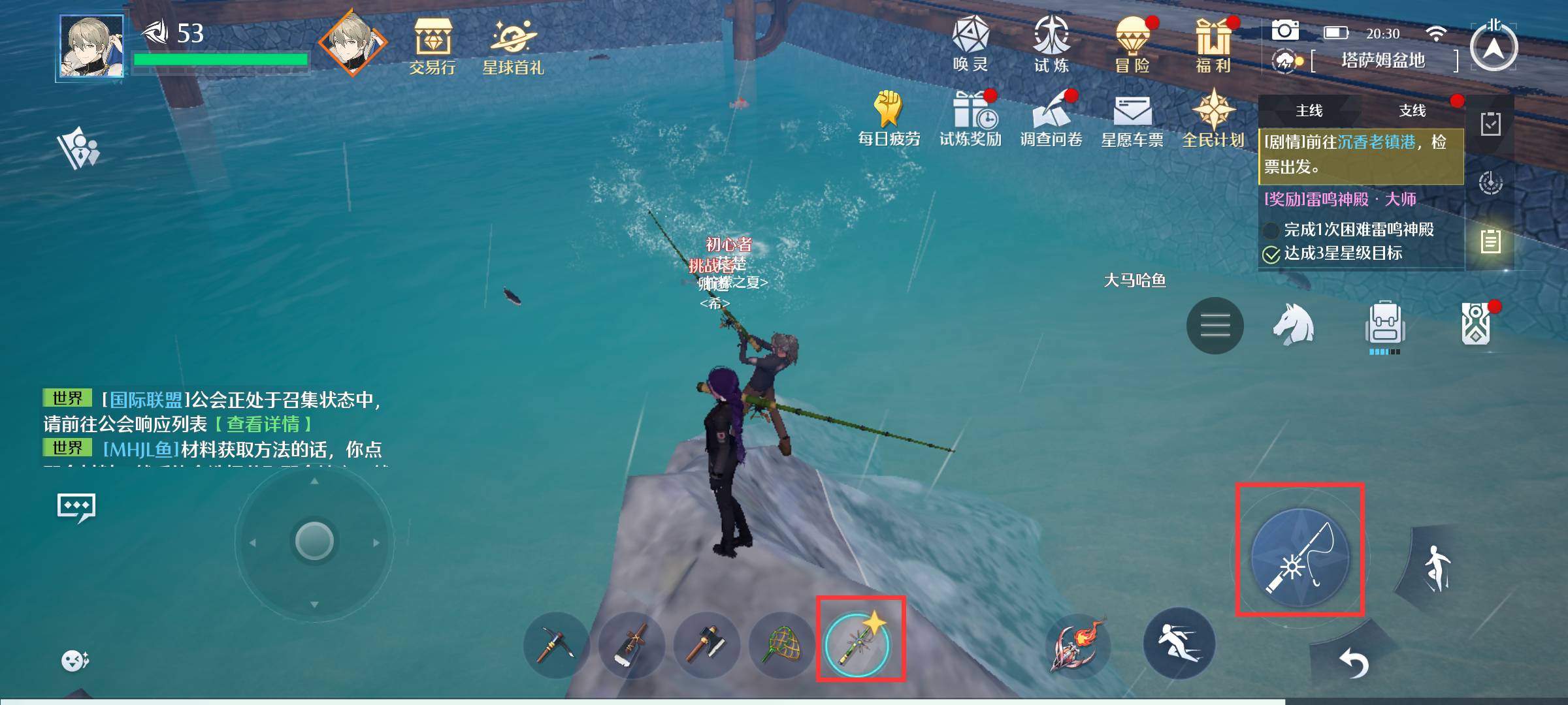 2、然后在海边点击鱼竿。
