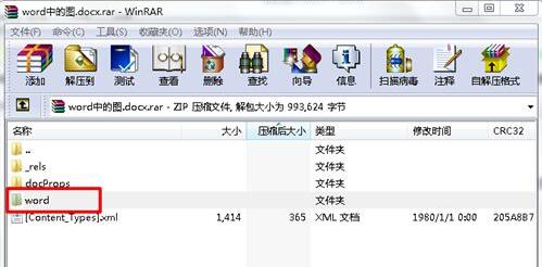 然后,双击改名后的文件,用Winrar打开。双击其中的word文件夹。
