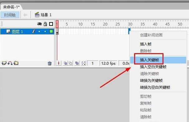 第三步,在第30帧右键选择插入关键帧或者使用快捷键f6