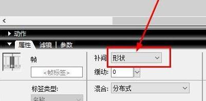 第六步,一般在高版本软件中,只要右键也可以创建补间形状,但是在Flash8里,右键只有补间动作,所以要在帧的属性面板中选择补间的类型,如图所示