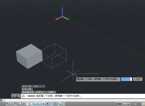 第六步:选择好几点后,移动鼠标,三维对象会相对基点移动的鼠标做相对距离的运动(如图所示)。