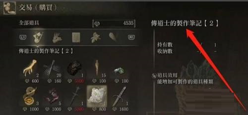 4、打开交易页面,购买传道士的制作笔记2。