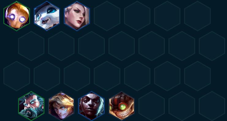 布里茨(2)、纳尔(3)、布隆(4)、艾克(3)嘉文四世(1)、希维尔(4)、艾瑞莉娅(4)、金克丝(5)