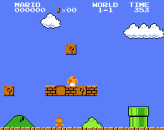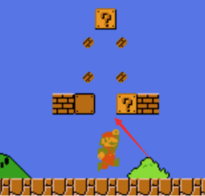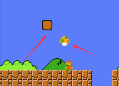 第二步:进入游戏后,顶砖块,会出现一个蘑菇,吃掉后,会变大。