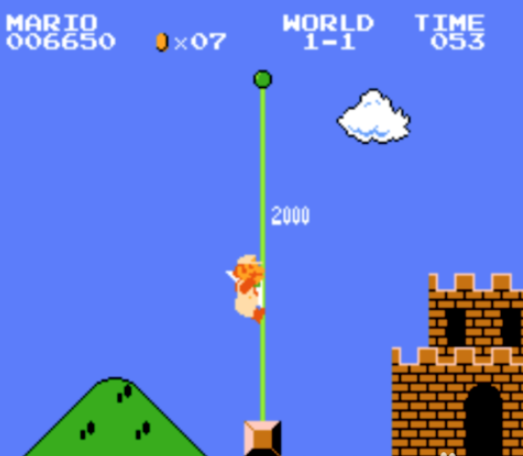 第七步:最后,我们抓到一面旗子,踩上去就算通过了。
