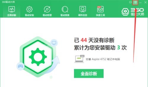 第一步:开启360驱动大师软件,点击右上角方框中的按钮。