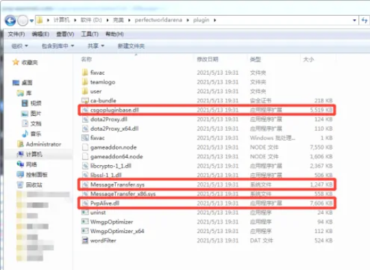 第二步:查看PvpAlive.dll csgopluginbase.dll以及MessageTransfer.sys文件是否丢失。