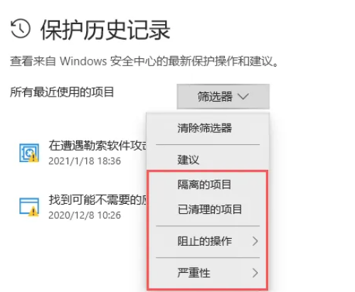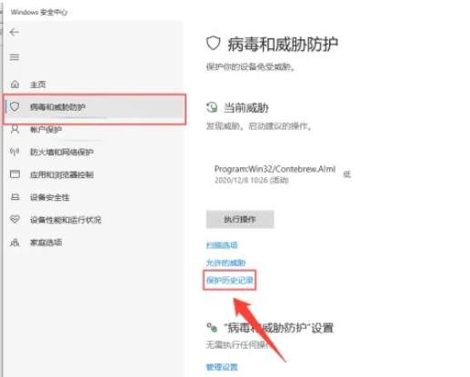 第四步:点击保护历史记录。