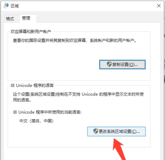 第四步:进入管理界面,点击更改系统区域设置。