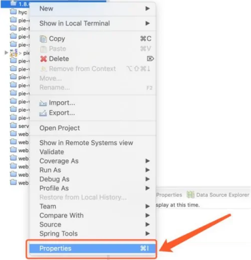 第一步:首先,打开Eclipse软件,选中项目并点击【鼠标右键】->【Properties】功能。