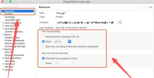 第二步:然后,在【Resource】->【Text file encoding】中设置代码编码为【UTF-8】。