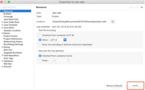 第三步:最后,点击【Apply】即可解决Eclipse项目乱码问题。