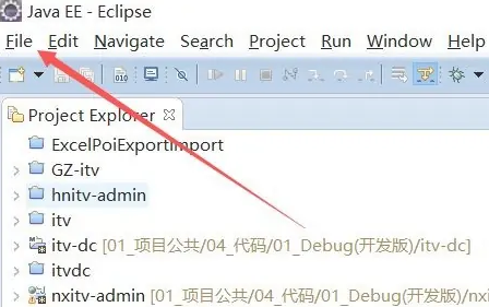 第一步:打开eclipse,在主界面中点击左上角的file。