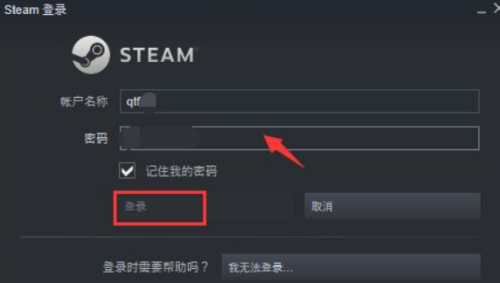 第二步:进入登录界面,输入你的steam账户和密码登录,如下图所示: