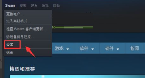 第四步:steam界面点击设置,如下图所示: