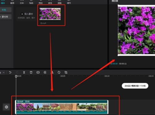 第二步:在新创建的窗口中,点击左上的“导入素材”按钮,在弹出的窗口中选择一个视频素材导入。