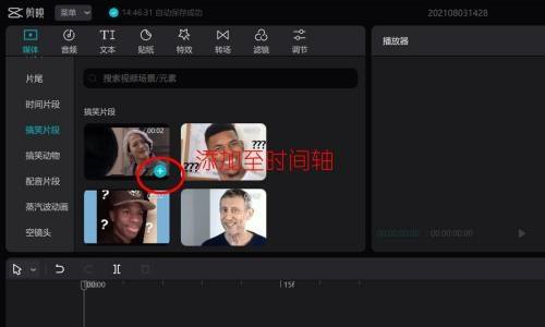 第三步:将素材拖入时间轴(或点击素材右下方加号)。