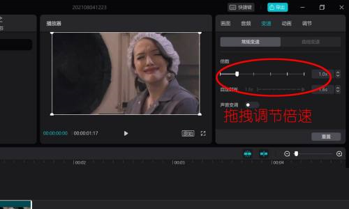 第六步:鼠标拖拽调节倍数即可(倍数与时长成反比)。