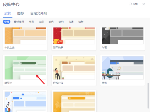 第四步:在wps“皮肤”设置中选择一种皮肤。如下所示: