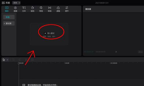 第二步:进入剪映主页后,点击导入素材。